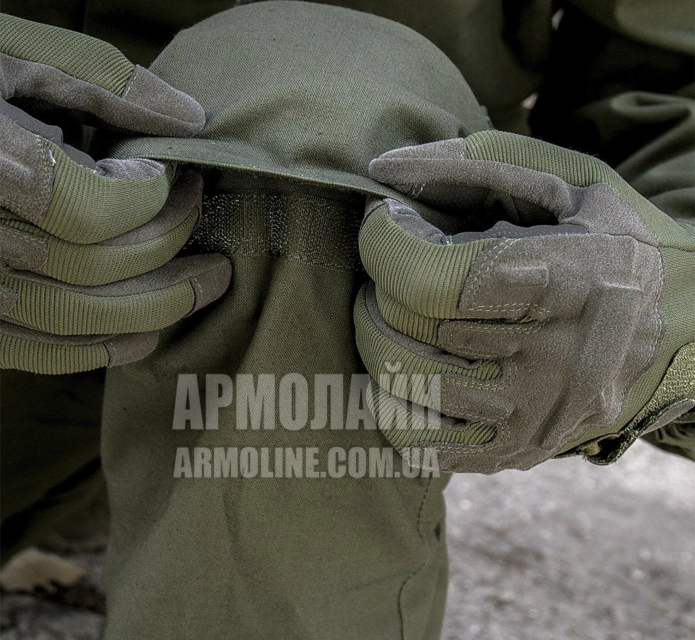 Костюм свободного покроя, состоит из куртки с усилениями на локтях, объемным капюшоном и тремя карманами и брюк с широким поясом с усилением на ягодицах, на коленях карманы на текстильной липучке для "мягких" вставок (наколенников), на брюках четыре кармана.