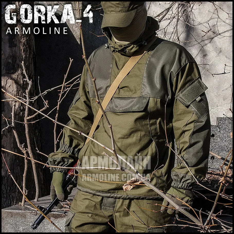 Отличительной особенностью Горки ― 4 является куртка-китель АНОРАК, которая одевается через голову и имеет пуговицы только в районе горловины. Такой вид куртки лучше защищает от ветра, пыли, песка и т.д., а сама конструкция получается более простой и прочной. Пользуется большой популярностью в боевых спецподразделениях.